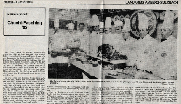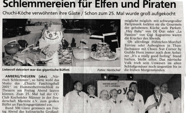 Mehr als 30 Jahre lang hat sich die Amberger Chuchi mit dem Chuchi-Ball im Schloß Theuern einen Namen gemacht und die Bevölkerung aus Stadt und Landkreis mit kulinar(r)ischen Höchstleistungen verwöhnt. 2008 fand der Chuchi-Ball letztmalig statt, da die Aufwände immer höher wurden und sich die Zeit der grossen Faschingsbälle dem Ende neigte.
